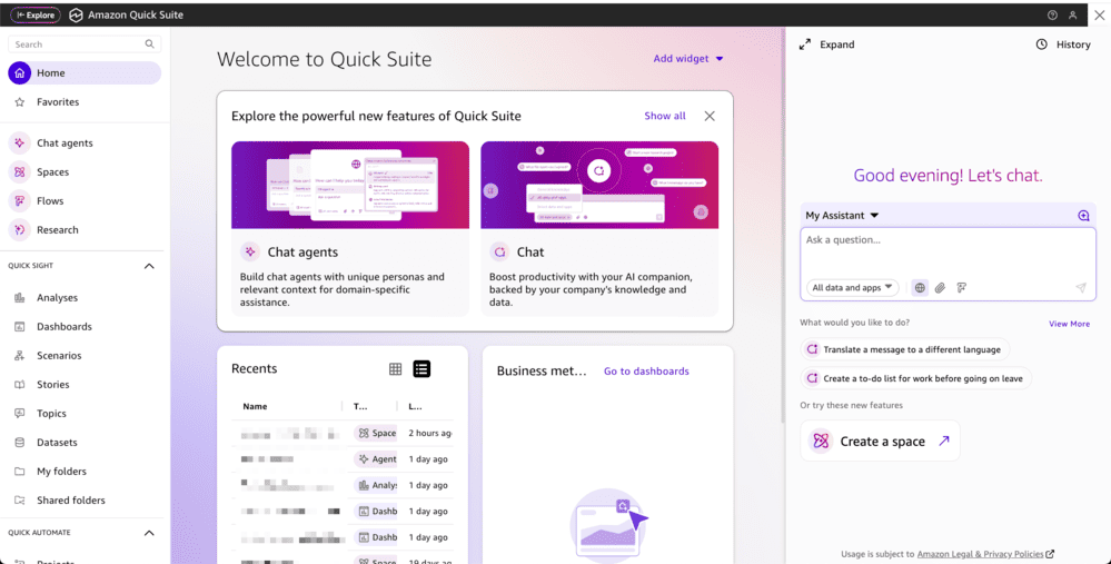 Le caratteristiche rivoluzionarie di Quick Suite