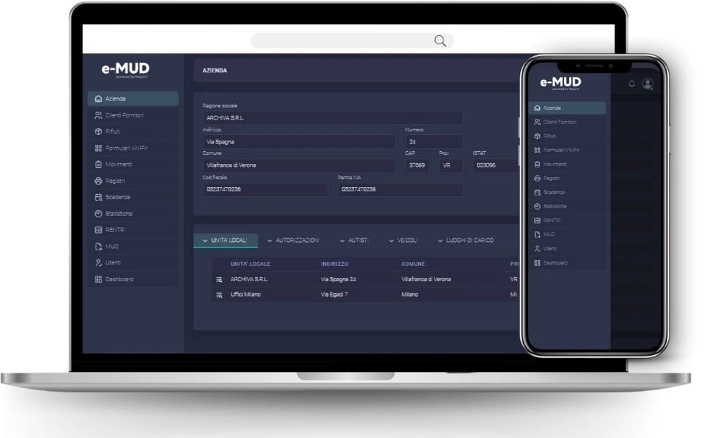 e-MUD è un’applicazione progettata appositamente per rispondere alle esigenze del RENTRI (Registro Elettronico Nazionale sulla Tracciabilità dei Rifiuti), il modello di gestione digitale dedicato ai produttori di rifiuti e a tutti i soggetti della filiera di gestione che devono assolvere agli adempimenti delle scritture ambientali obbligatorie.
