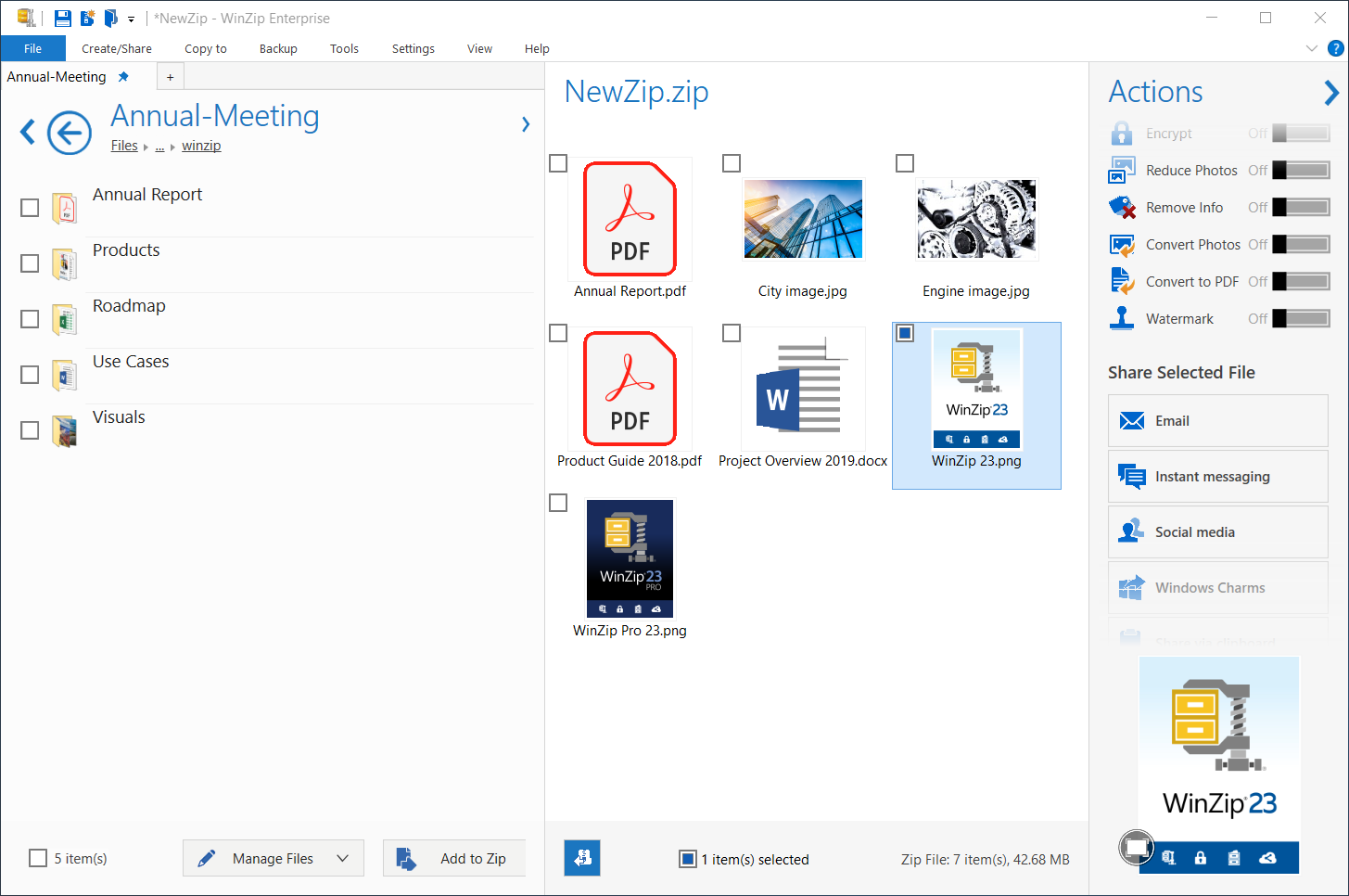 WinZip 23 Enterprise si basa sulla potenza di WinZip 23 Pro, l’ultima versione del software di compressione, crittografia e condivisione di file più potente al mondo. WinZip 23 Pro aumenta la produttività con aggiornamenti che permettono di risparmiare tempo e un’esperienza utente ottimizzata. Maggiori informazioni sulle novità di WinZip 23 Pro, sono disponibili al sito www.winzip.com.
