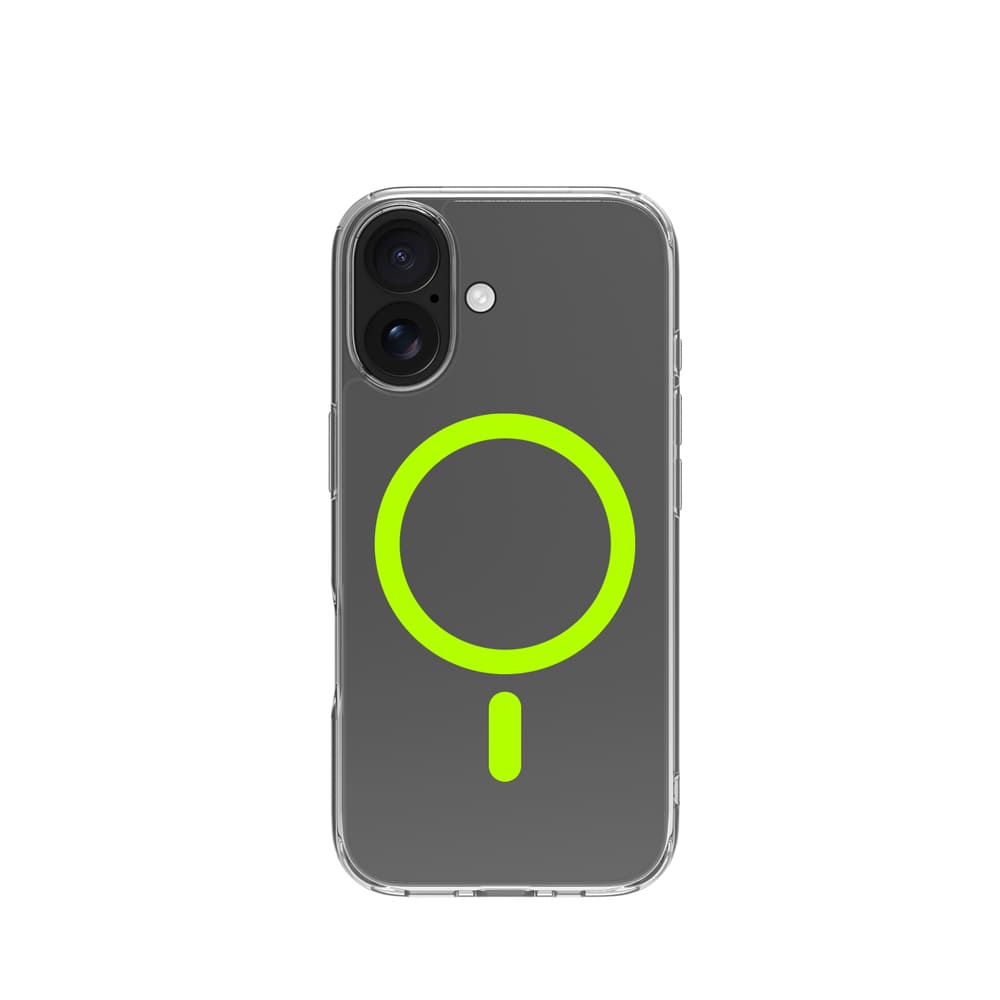 Cover trasparente ma con dettagli colorati (nero, blu, giallo o verde), compatibile con la tecnologia Magsafe, perfetta per chi desidera qualcosa di semplice ma che si faccia notare.
