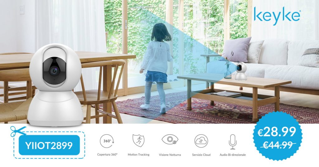 Direttamente dall’universo Powered by YI, ecco il nuovo arrivo di casa Keyke Keyke Smart Dome Camera a soli €28,99 (-36%!) semplicemente inserendo all’acquisto il codice-sconto✂✂ YIIOT2899