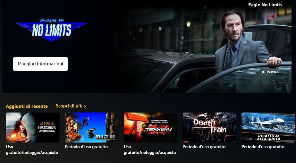 Riservato agli abbonati Prime Video, il canale Eagle No Limits è accessibile in prova gratuita per 7 giorni e a seguire con un abbonamento di € 4,99 al mese.