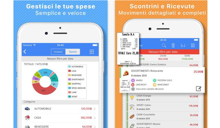 Numerosi grafici a disposizione per visualizzare al meglio l’andamento delle proprie entrate e uscite. Disponibili inApp Purchase i reports che forniscono un dettagliato resoconto in formato PDF.