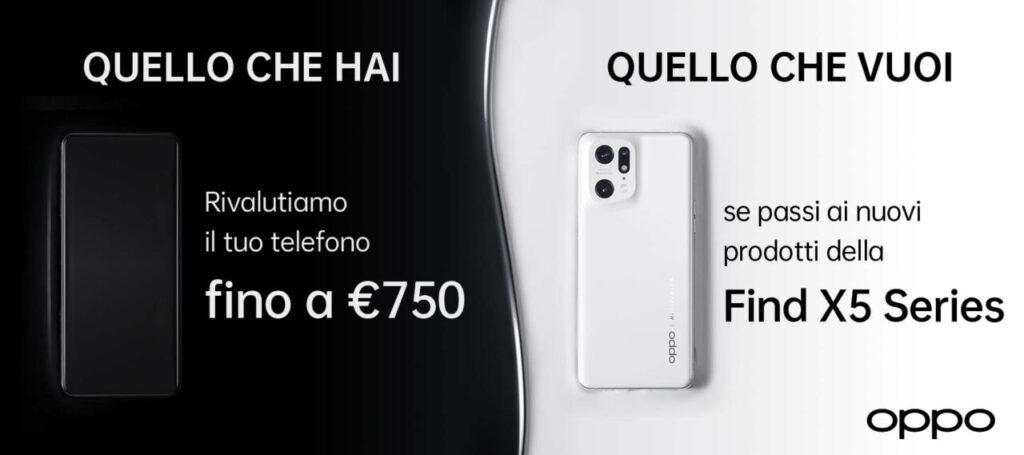 - Acquistando OPPO Find X5 è possibile ricevere Enco X, OPPO Watch Free e una Cover, per un valore commerciale di 327,00€;