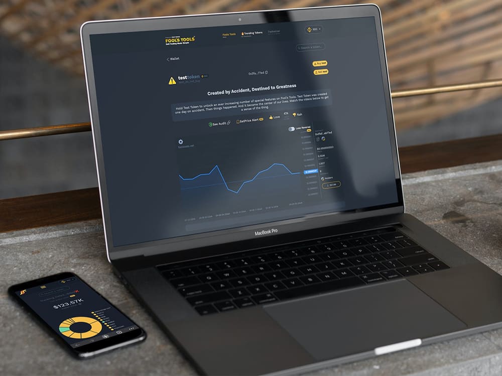 L’idea di Fool’s Tools è nata dopo che, nell’ambito di un progetto di ricerca sugli smart contract, l’agenzia ha rilasciato in sordina una propria criptovaluta chiamata TEST, attorno alla quale si è sviluppata spontaneamente una community di investitori che ha deciso di comprarla e contribuire al progetto, nonostante il team di Fornace si sforzasse ironicamente di convincere tutti a non farlo. Questo meccanismo di psicologia inversa ha conquistato migliaia di persone. Il valore di TEST è schizzato da un investimento iniziale di 300$ fino a un ATH (all-time high) di 16 milioni di $ di market cap in circa tre settimane, per poi riassestarsi nel periodo di bear delle crypto ad un valore di circa 1 milione di euro, che l’agenzia considera comunque straordinario dal momento che quanto fatto finora non è che una prova tecnica del progetto finale.