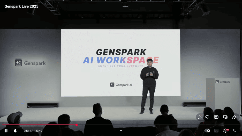 - Collaborazione con OpenAI: Hao di OpenAI è salito sul palco per presentare a Genspark un segno di apprezzamento per aver superato 1 Trillion di token elaborati. La partnership coinvolge un accesso profondo alle API Realtime di OpenAI per le funzionalità vocali