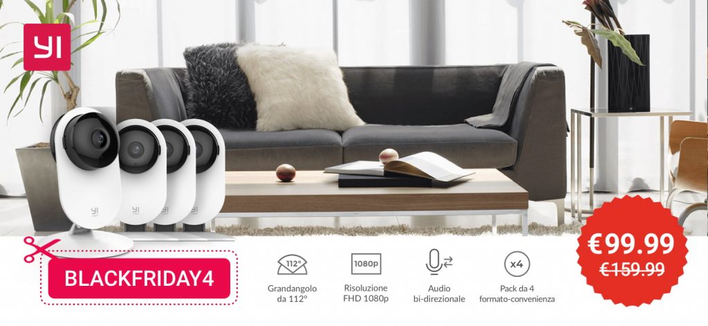 YI Camera di sorveglianza IP 1080p (pack da 4) all’incredibile prezzo mai fatto prima di €99.99 (-38%!) semplicemente inserendo all’acquisto il ✂codice-sconto BLACKFRIDAY4