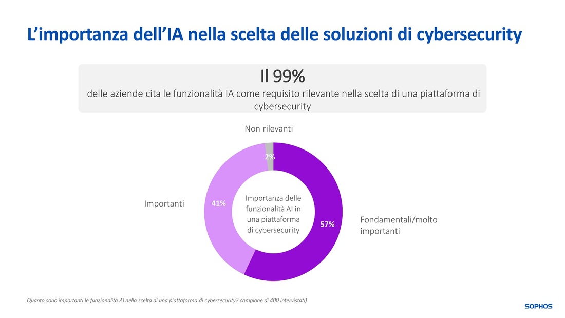 Sophos, leader mondiale e innovatore nelle soluzioni di sicurezza avanzate per neutralizzare i cyberattacchi, ha pubblicato una nuova ricerca dal titolo “Beyond the Hype: The Businesses Reality of AI for Cybersecurity” che analizza le implicazioni dell’utilizzo della AI nell’ambito della sicurezza informatica secondo 400 responsabili IT.