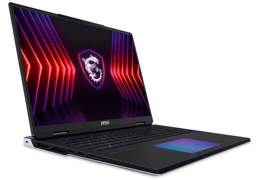 Nuova punta di diamante della linea gaming, il super performante Titan 18 HX, vincitore del CES 2024 Innovation Award sia nella categoria “Gaming & eSport” sia in quella “Intelligenza Artificiale”, è dotato del primo display mini LED 4K 120Hz da 18 pollici al mondo, che offre risoluzioni elevatissime, tecnologia DisplayHDR 1000 e un’ampia copertura della gamma cromatica. Per garantire il top delle performance sia con i videogiochi sia con l’AI, Titan 18HX è equipaggiato con CPU Intel Core™ i9 -14900HX di 14° generazione e grafica NVIDIA® GeForce RTX™ 4090, la GPU mobile di tipo consumer più potente in circolazione. Primo laptop firmato MSI con uno schermo di queste dimensioni ad arrivare nel nostro paese, Titan 18 HX è ora disponibile in pre-ordine in Italia al prezzo 5.999 Euro i.c.
