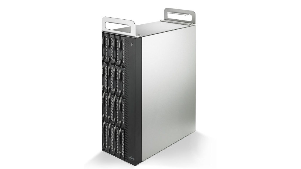 Lo spazio di archiviazione a 16 vani di D16 Thunderbolt 3 offre una capacità di archiviazione totale fino a 288 TB (16 dischi rigidi da 18 TB), supportando sia dischi SATA da 3,5″ che SSD da 2,5″. Altri dispositivi di archiviazione possono essere collegati in cascata tramite tecnologia Thunderbolt 3: utilizzando sei unità D16 Thunderbolt 3 collegate in cascata è possibile raggiungere un enorme spazio di archiviazione locale di 1 PB.