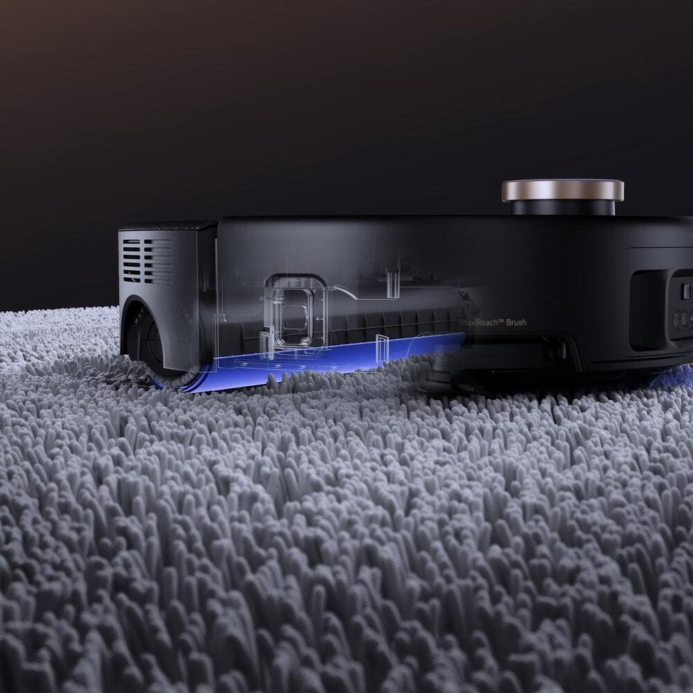 Inoltre, mentre molti robot aspirapolvere a rullo hanno difficoltà a rimuovere la polvere lungo le pareti, la tecnologia MaxiReach™ di Z60 estende ingegnosamente sia il rullo del mocio che la spazzola laterale oltre il telaio del robot. Questa estensione meccanica rompe gli schemi dei rulli tradizionali, consentendo una pulizia accurata a filo dei battiscopa e in profondità negli angoli.