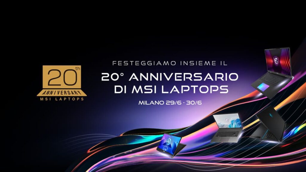 [10/06/2024](TAIPEI, TAIWAN)–MSI, brand leader nel settore dei notebook per il gaming, la content creation e la produttività, annuncia di aver organizzato un evento a Milano per festeggiare il 20° anniversario dei propri laptop, cui potranno partecipare gratuitamente, previa registrazione, i fan italiani e gli appassionati di gaming e tecnologia.