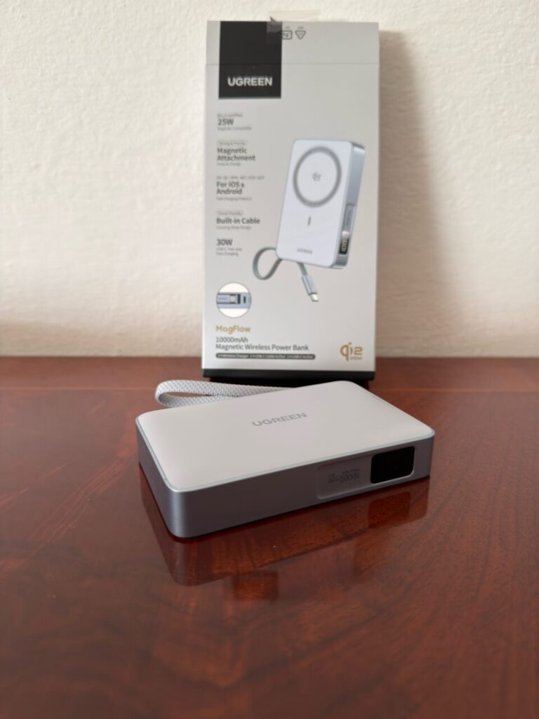 Per chi invece viaggia spesso e ha bisogno di un power Bank veloce e potente allora deve dare un’occhiata al UGREEN MagFlow Magnetic Power Bank da 10.000 mAh a 25W, uno dei primi power bank a supportare la tecnologia Qi2. Come dice il nome stesso il caricabatterie ha una capacità di 10.000 mAh, può caricare fino a tre dispositivi contemporaneamente grazie piastra di ricarica wireless magnetica (Qi2 fino a 25W), al cavo USB-C integrato da 30W e per ultimo tramite la porta USB-C aggiuntiva. Lateralmente è presente anche un display che mostra la carica residua, molto utile per capire la carica con maggior dettaglio. I