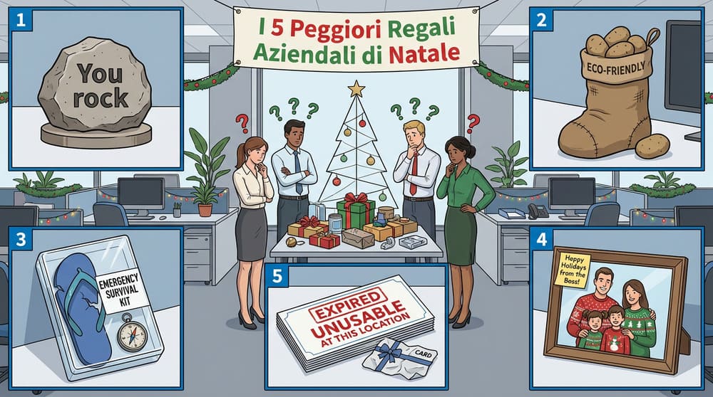 Il periodo natalizio in azienda è spesso vissuto tra l’attesa delle vacanze imminenti e la frenesia delle chiusure di fine anno. Tra queste, il classico regalo aziendale dovrebbe rappresentare un momento di leggerezza e buonumore, dovrebbe… perché, quando l’originalità prende il sopravvento, il risultato può trasformarsi in un ricordo indimenticabile, ma non nel senso sperato, lasciando i dipendenti più perplessi che felici.