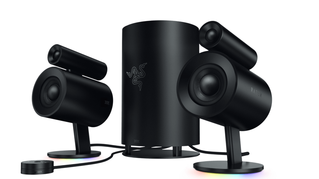 Certificazione THX, due tweeter indipendenti in seta montati su altoparlanti rivestiti in Kevlar Dupont™ con driver da 3 pollici, nonché un subwoofer cilindrico indipendente da 7 pollici sono alcune delle caratteristiche principali del sistema. Completa il tutto un control pod per la regolazione di volume e potenza, mentre la personalizzazione di audio dei bassi, equalizzatore e illuminazione viene gestita tramite l’app Razer Synapse o Nommo Pro.