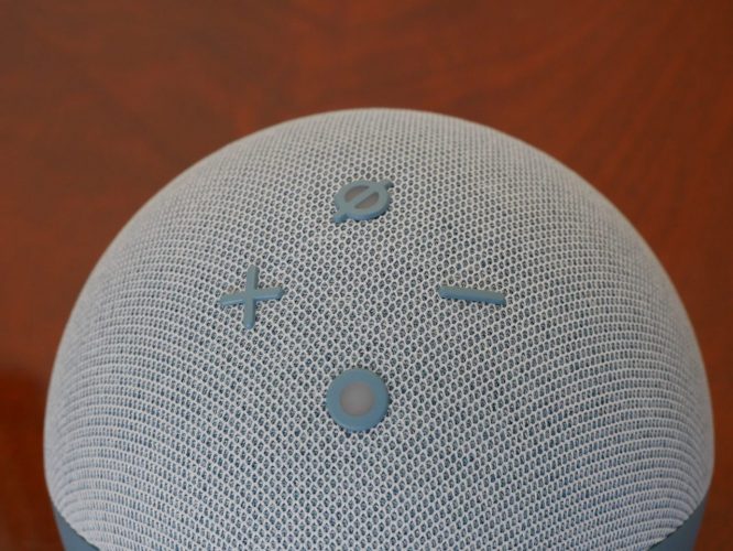 Nella parte superiore troviamo 4 tasti fisici (volume, disattivazione del microfono ed attivazione manuale di Alexa), in questa nuova versione risultano leggermente più prominenti.