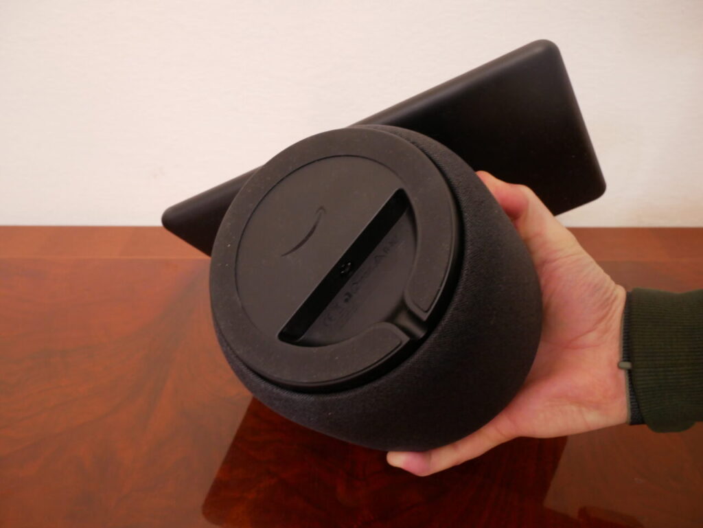 Partendo dal design differisce anche un pochino rispetto ai suoi vari fratelli anche se sembra una specie di ibrido che li comprende vari tutti insieme; infatti oltre al grande display che può essere considerato un tablet per via delle misure, collegato ad un cilindro che assomiglia molto ad un piccolo Echo Studio. Rappresentato da un cilindro 6,7 pollici a forma di botte rivestito in tessuto a griglia simile a quello che si trova sui recenti altoparlanti Echo. A collegare il tutto un piccolo braccio corto che si estende dal bordo superiore del cilindro.