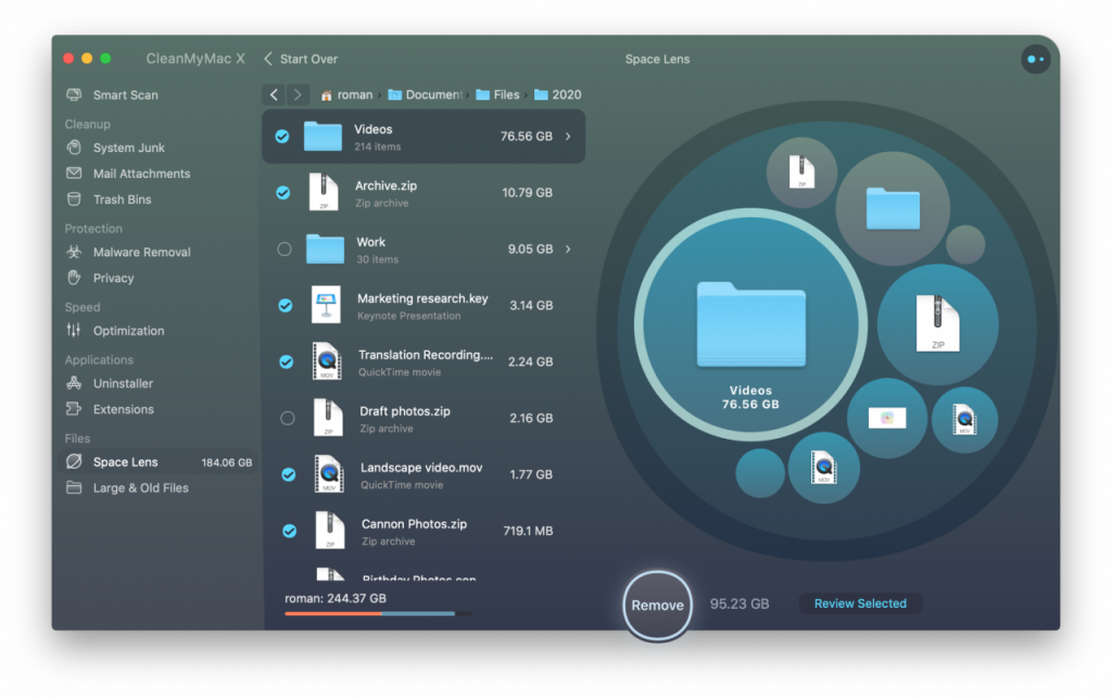 CleanMyMac X è, a detta dell’azienda, ben 17 volte più veloce rispetto alla versione precedente. Analizza tutto ciò che si trova sul disco, cartella per cartella, e raccoglie gli elementi da poter eliminare in modo sicuro.