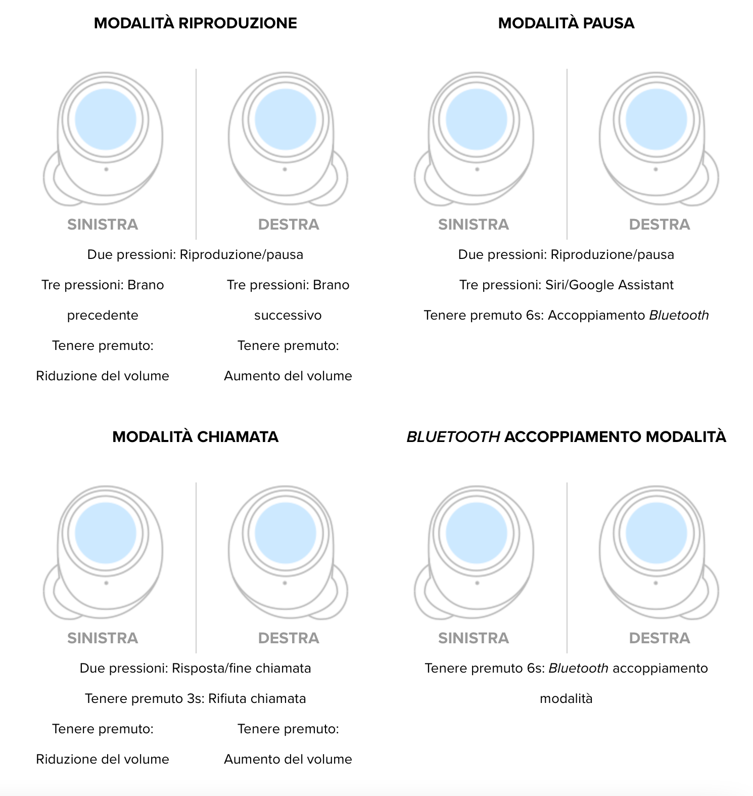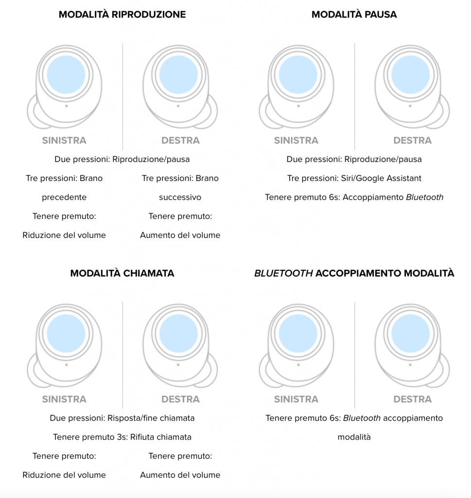 Rispetto al modello precedente i nuovi V2 posseggono controlli touch e sempre nella parte esterna troviamo anche dei LED circolari. I comandi che vengono impartiti nella parte esterna possono cambiare a seconda che si interagisca con l’auricolare sinistro o destro.