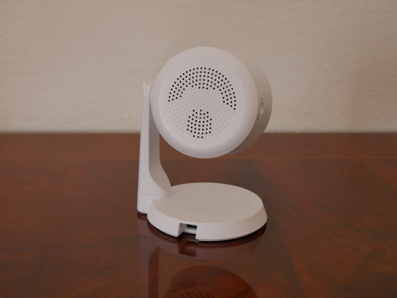 Nella base circolare troviamo, sul retro, la presa per l’alimentazione Micro USB (peccato avrei preferito fosse aggiornata alla Type C), mentre nella testa cilindrica troviamo il posto per altoparlante (funzione audio a due vie, ascoltare e parlare) nella parte posteriore e di lato lo slot per la scheda microSD (max 256GB), sul davanti LED di stato, microfono, LED infrarosso, obiettivo con risoluzione 1080P Full HD, sensore di luce e sotto il pulsante di ripristino.