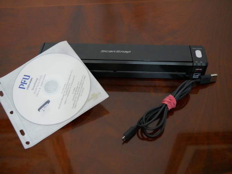 Aprendo la confezione, che mi sarei aspettato un po più elegante visto che era in cartone molto grezza, troviamo all’interno il piccolo Fujitsu ScanSnap iX100, dal peso irrisorio, cavetto usb-micro usb (mi sarei aspettato un connettore Type C per la ricarica più veloce), vari manuali e il cd di guida ed installazione aggiornamenti.