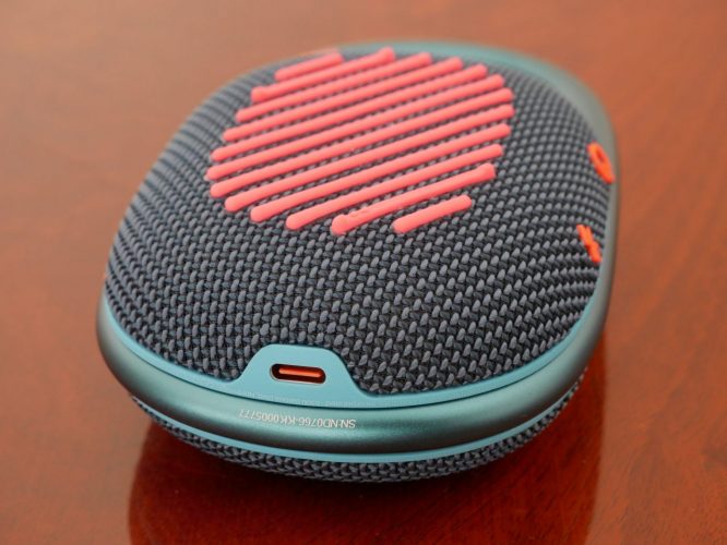 La porta USB-C è scoperta, ma non preccupatevi in quanto Clip 4 garantisce un grado di protezione IP67, quindi completamente impermeabile e resistente alla polvere. L’altoparlante può essere immerso fino a 30 minuti in un metro d’acqua senza problemi.