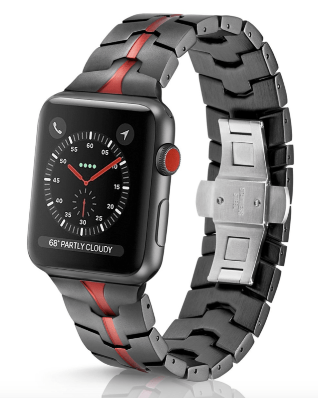 Il colore è anodizzato e non sarà cancellato dall’uso quotidiano o dal sudore, facile da pulire. La chiusura a farfalla è differente rispetto a quella proposta dal Link Apple, ma il risulato è lo stesso; i classici due bottoni che sporgono leggermente ai lati per sbloccarlo.