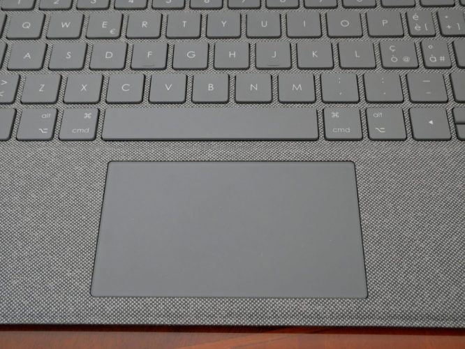 A questo si aggiunga il trackpad, la vera novità da utilizzare con il nostro iPad grazie a iPadOS, comodo da utilizzare anche se non è grande come quello dei nostri MacBook (ma più grande in alto rispetto a Magic Keyboard) e ha un feedback più duro infatti dovremo premere più forte.