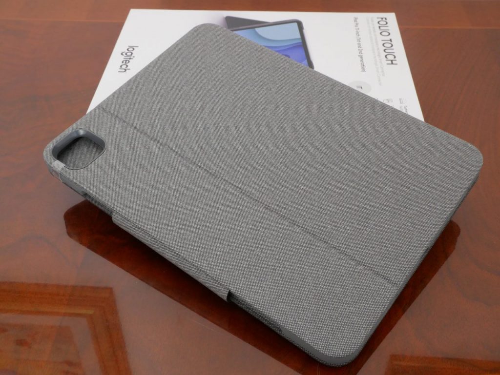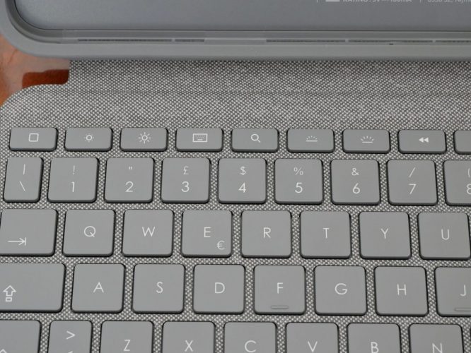 Folio Touch si presenta formata da due elementi uniti: una custodia che protegge interamente il nostro iPad, con un materiale morbido di gomma di colorazione grigia, tipo panno (da qui la prima somiglianza al Sourface) in cui abbiamo il ritaglio per la fotocamera, il foro per la porta USB-C, lo spazio per riporre la Apple Pencil ed il comodo attacco Smart Connector così da alimentare il tutto con il proprio iPad; l’altra la comoda tastiera composta da un trackpad, anch’essa della stessa tramatura di tutta la cover che a dir la verità da modo di mascherare il possibile sporco e non vedere macchie o ditate qua e là.