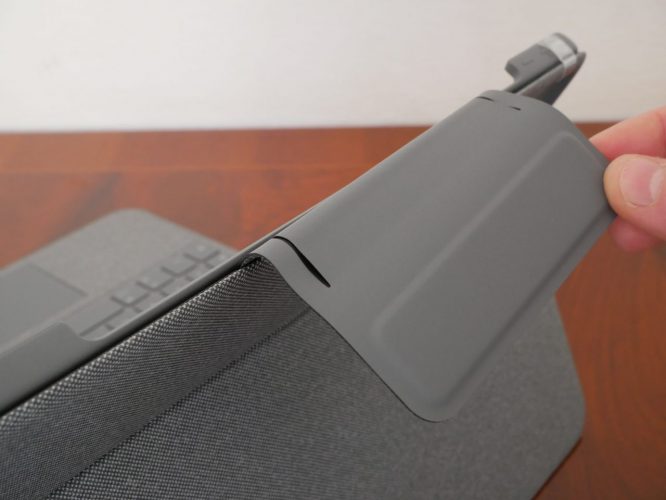 Sulla parte superiore della cover, dove viene riposta la Apple Pencil per intenderci, troviamo un lembo che chiude la cover magneticamente quando non la usiamo e possiede un piccolo alloggiamento qualora possediate la Logitech Crayon (anche come soluzione per non perdere la Pencil e tenerla ben ancorata), pencil di casa Logitech che non pisside un attacco magnetico ad iPad per cui potrebbe essere facile perderla ma anche in questo caso tutto è stato studiato nel minimo dettaglio.