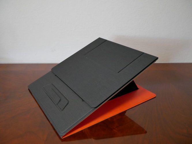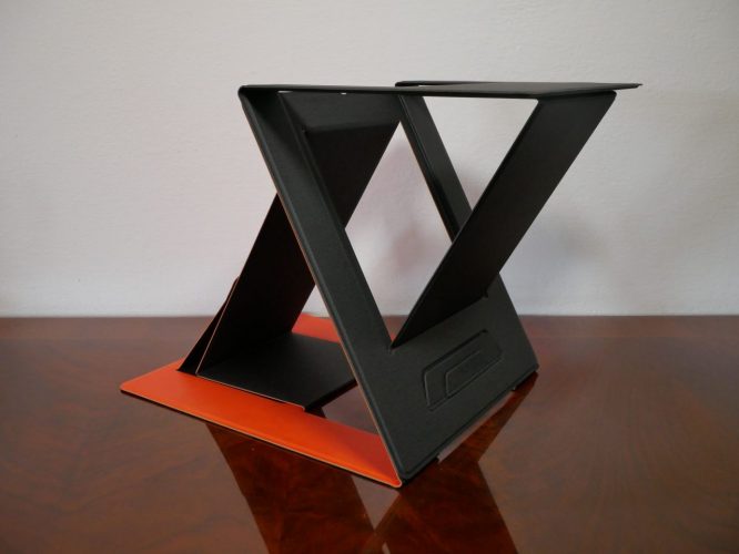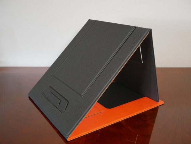 Appena estratto dalla confezione ci troveremo di fronte un prodotto davvero compatto, si parla di soli 1,27 cm di altezza, con il quale saremo in grado di avere ben cinque posizioni differenti: un angolo di 25°, 35° o 45° per l’uso del laptop da seduto, un angolo di 60° per sostenere un tablet oppure per avere un ripiano per un sollevamento completo (circa 25 centimetri) per usare un laptop in piedi.