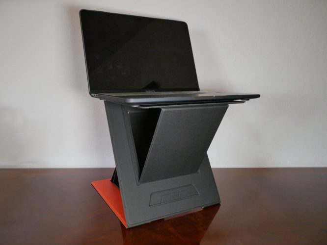 Moft Z si orienta su un mercato non solo per chi vuole utilizzare il proprio computer in piedi, anche se questa è la sua caratteristica principale, ma anche per un uso da scrivania e qui sicuramente incontra parecchi gusti degli utenti che magari non sono del tutto consoni ad un uso in “aria”.