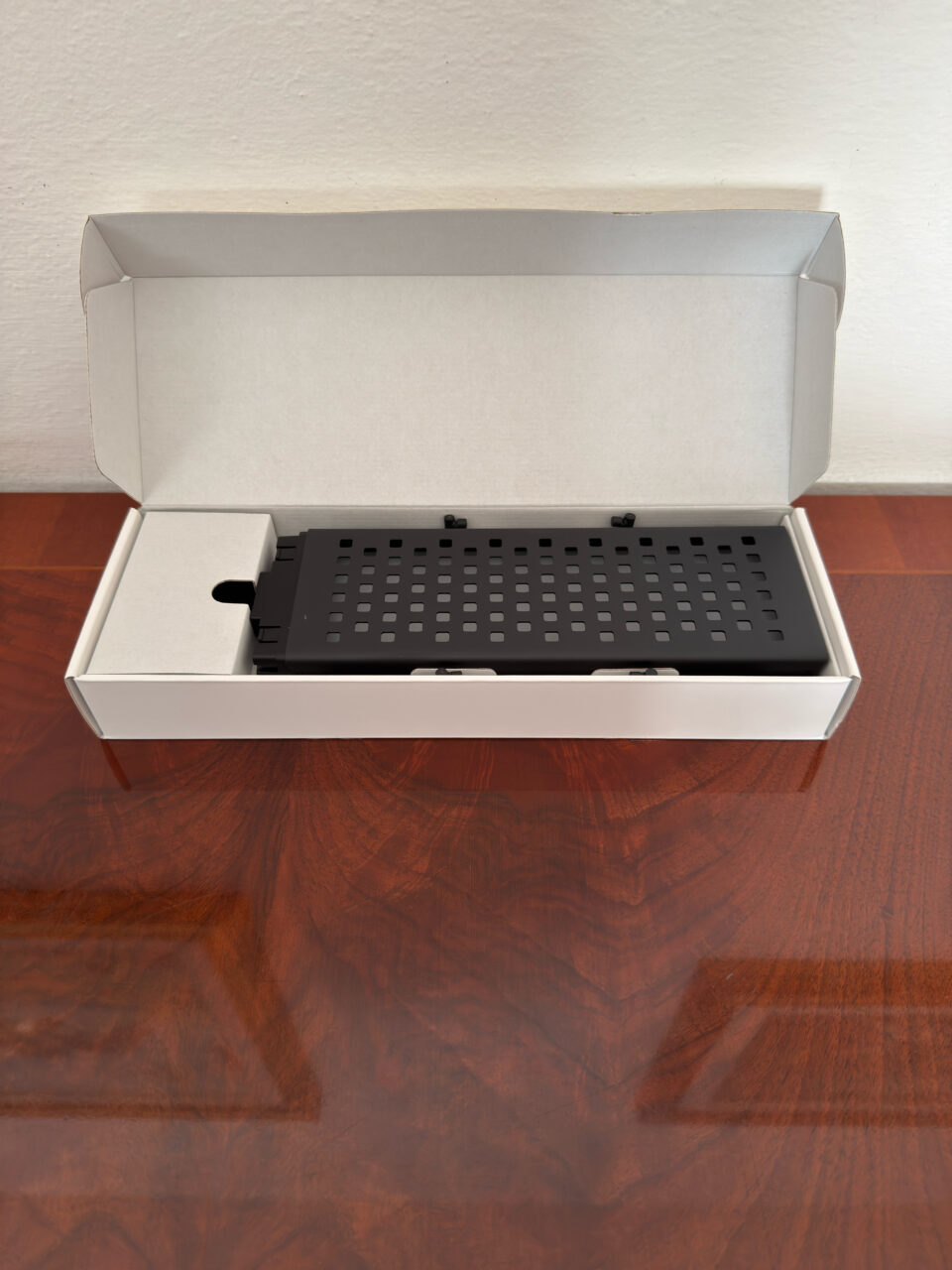 Il Pegboard presenta una struttura sottile con pannello forato ruotabile di 180°, infatti si compone di due parti, permettendo di scegliere se usare il lato illuminato (composto da 32 LED, ambo i lati) o quello dedicato all’organizzazione inserendo i ganci presente in confezione (4 sono presenti nella scatola), sempre illuminato. Il design è minimale, con finitura nera elegante che si integra facilmente in qualsiasi setup moderno.