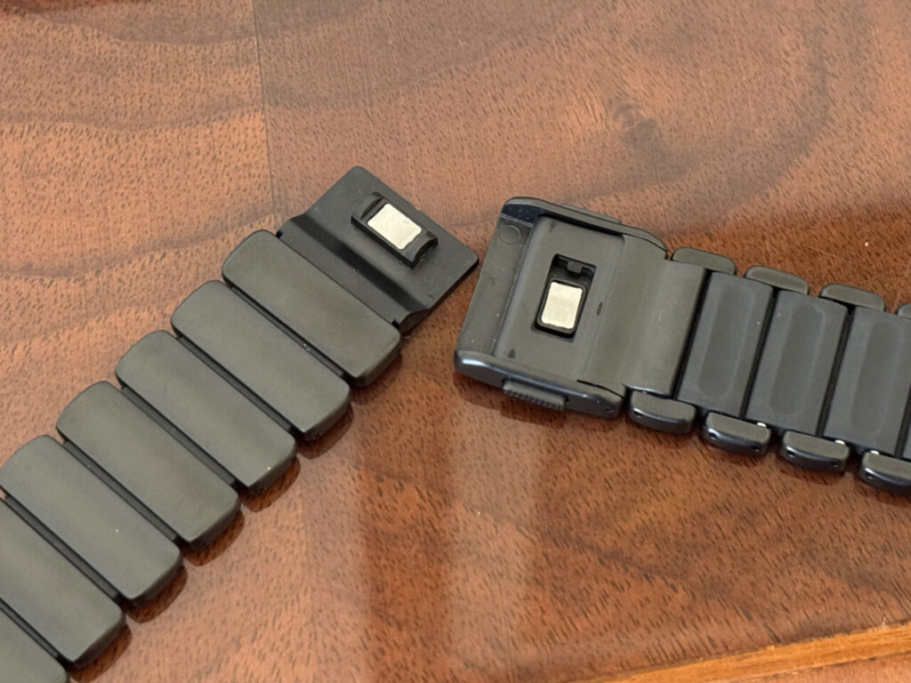 Nella parte interna le maglie FKM hanno dei canali concavi così da rendere il cinturino traspirante e fornire flessibilità. La chiusura del cinturino è davvero eccezionale grazie al meccanismo magnetico, davvero bello, che permette di avere un corretto allineamento ed una facile chiusura o apertura con una sola mano.