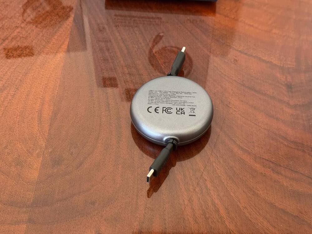 Partendo dalla sua dotazione troviamo, oltre al solito cavo retrattile di tipo USB-C (lunghezza massima 58 centimetri) con diverse regolazioni che bloccano il cavo per non lasciarlo completamente allungato anche se non serve.