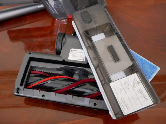 Un aspetto importante sicuramente è quello dell’autonomia e qui purtroppo tocchiamo un punto dolente, la batteria è al litio (2500mA SamsungLithium-ion) e l’azienda parla di circa 53 minuti in piena attività; vero si se si utilizza una modalità eco ma se si utilizza quella a maggior potenza cala drasticamente a 10-15 minuti, mentre in quella auto circa 30 minuti. Questo è l’aspetto in cui pecca e chi è abituato al modello a cavo sentirà particolarmente la sensazione di un prodotto che dura troppo poco; dipende poi dalla casa che uno possiede ovviamente ma la differenza si sente se utilizzate la modalità massima potenza.
