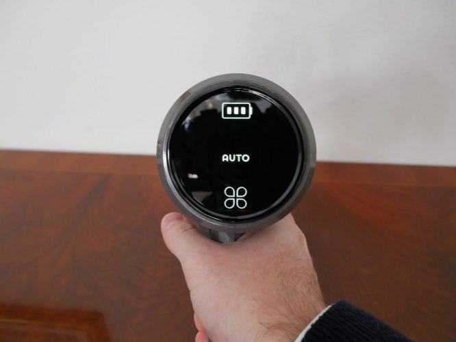 Quello che si apprezza sicuramente è la semplicità con cui lo andremo ad utilizzare, infatti basterà accenderlo con il comodo grilletto (che fa da on/off) e da qui andremo ad attivare il display touch con il quale sceglieremo con quale modalità andare ad aspirare; oltre a controllare lo stato della batteria e/o possibili messaggi di allerta problemi.