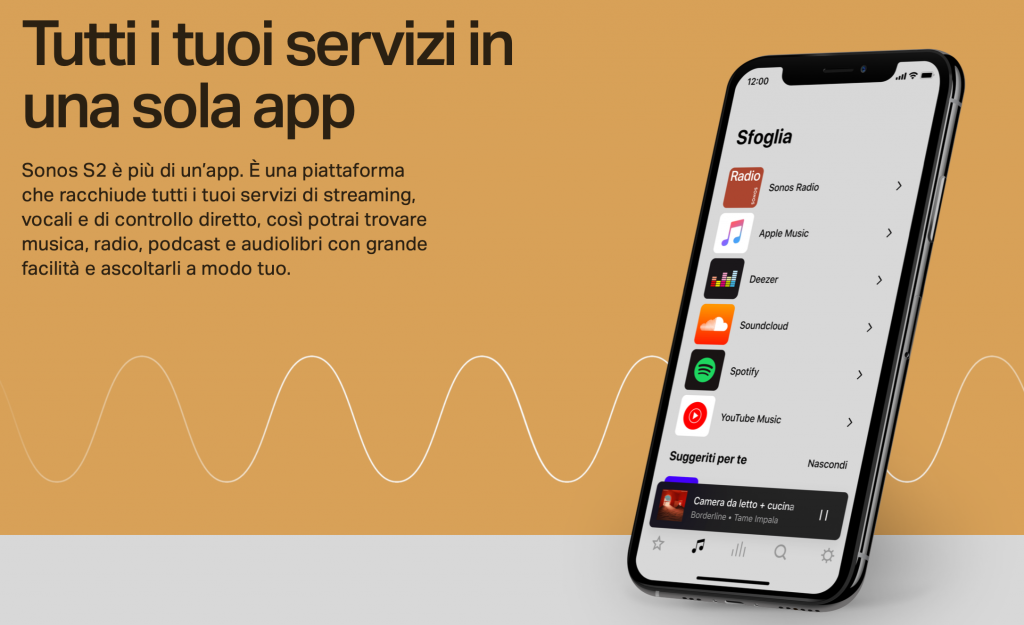 A questo si aggiunga il supporto ad Airplay 2, in questo caso sarà possibile associare il nostro Sonos con Apple TV ed HomePod (qualora lo abbiate) ed altri speaker Airplay 2; gestendo il tutto da iPhone, iPad e Mac con regolazione del volume per ogni singolo speaker. A questo si aggiunga la possibilità di reperire la vostra musica anche dal NAS o altri servizi.