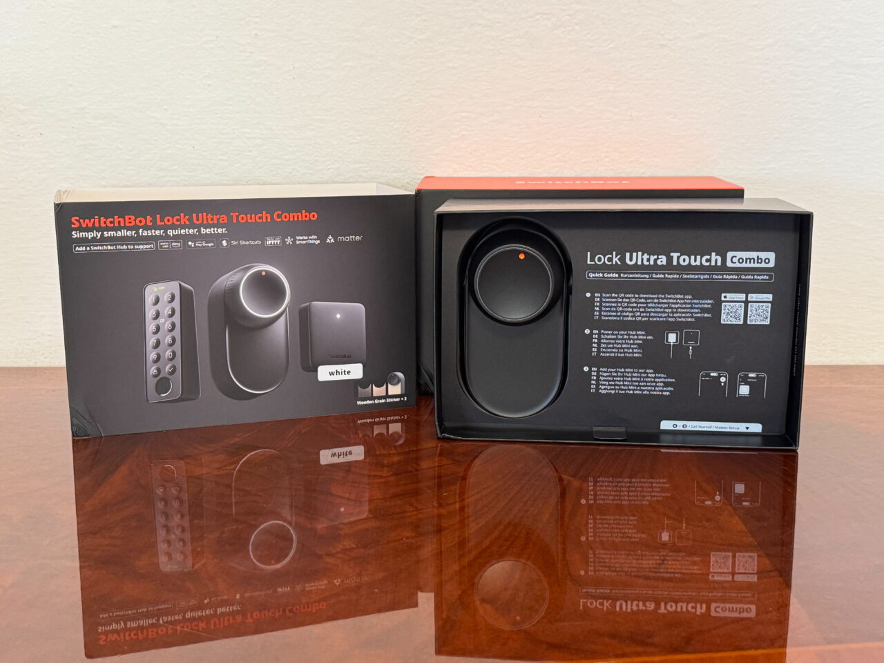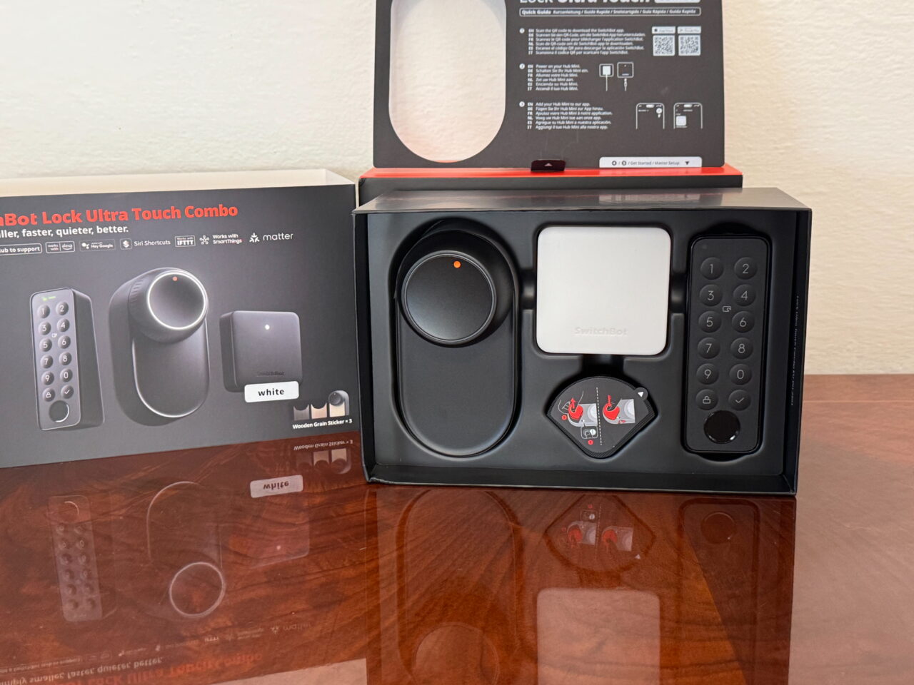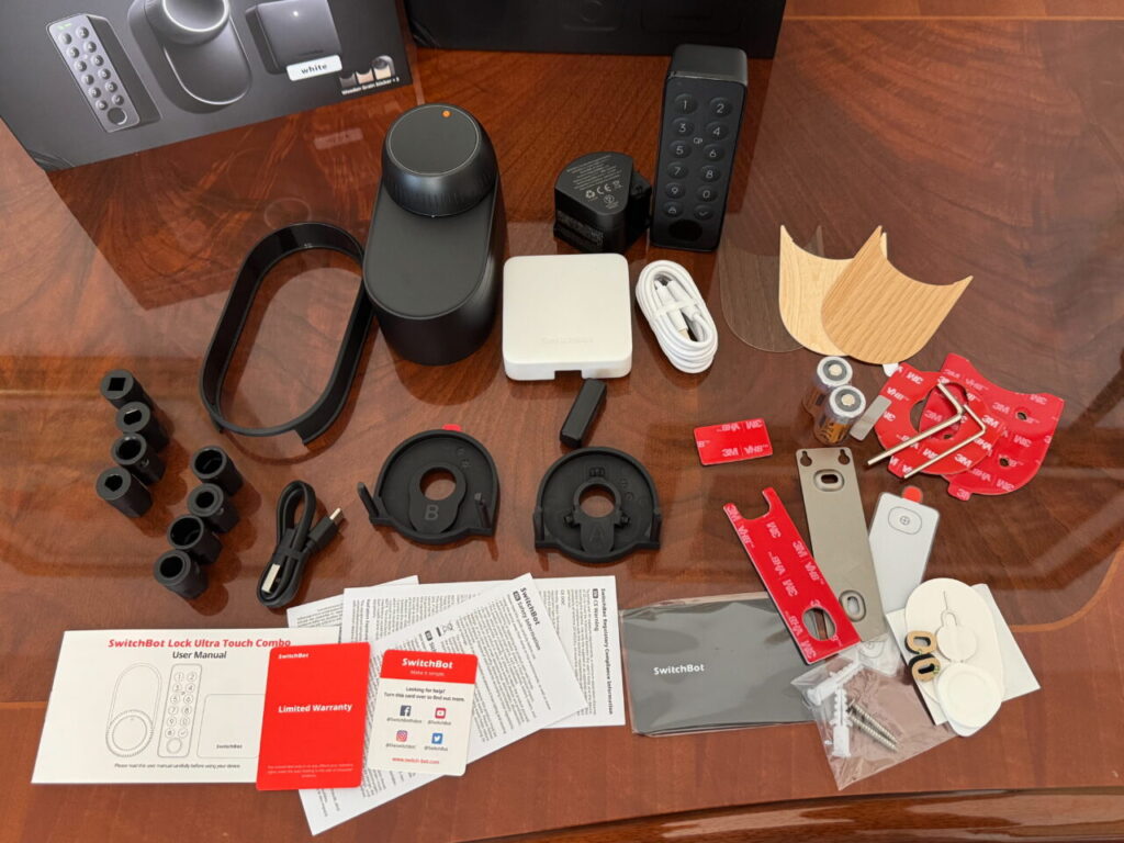 Andiamo adesso ad analizzare cosa ci troviamo di fronte quando apriamo il kit SwitchBot Lock Ultra Touch Combo + Keypad Vision , una scatola ben organizzata contenente gli accessori utili per montare il tutto: