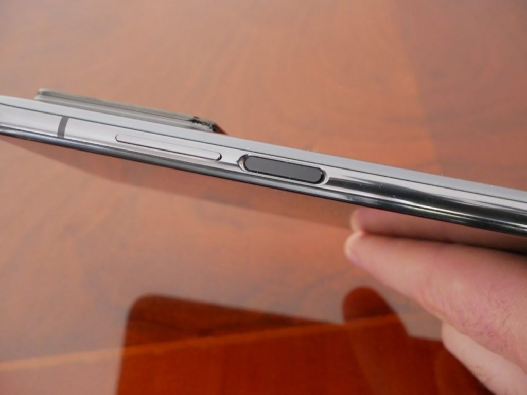 Il telaio è in alluminio, con un rapporto di forma 20:9 lascia visto che nella parte dietro è lucido parecchie ditate, ma questo non è certo un problema. Ospita una USB-C sul fondo ed a fianco troviamo anche il carrellino per la doppia scheda SIM ed i microfoni, mentre sul lato destro il bilanciere del volume ed il tasto di accensione e spegnimento con sensore per il riconoscimento delle impronte integrato, non abbiamo sensore ottimo o ultrasonico quindi sotto lo schermo, oppure lo sblocco può avvenire anche con riconoscimento biometrico del visto con telecamera frontale.