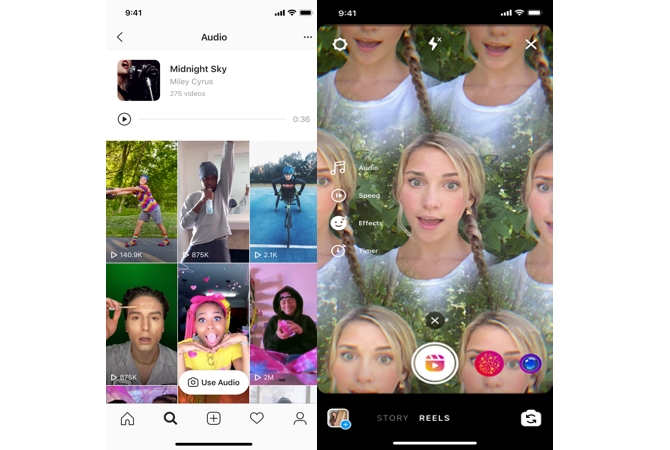 Puoi condividere i reel con i tuoi follower sul Feed o, se il tuo account è pubblico, renderli disponibili all’intera community Instagram grazie a un nuovo spazio dedicato all’interno della sezione Esplora. Reels in Esplora offre a chiunque la possibilità di diventare un creator su Instagram e raggiungere un nuovo pubblico su un palcoscenico globale.