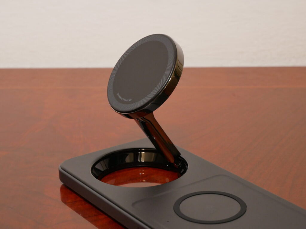 La ricarica magnetica, grazie ad un piccolo braccio lungo 5 cm, da modo di poter caricare il nostro iPhone in varie angolazioni, da quella classica piatta ma anche in verticale, orientandolo in verticale ma anche in orizzontale per la modalità StandBy, per poter avere una migliore visione del nostro dispositivo o semplicemente per fare delle videochiamate.