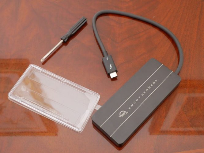 Avere degli SSD portatili di alto livello risultano sicuramente costosi, soprattutto se consideriamo la caratteristica Thunderbolt. Per cui se stai cercando di ridurre il costo la nuovissima soluzione di OWC, marchio molto conosciuto nel settore, Envoy Express fa sicuramente al caso vostro; un contenitore NVMe vuoto con cavo Thunderbolt 3 (25 cm) annesso, ottimo per potere essere subito pronto all’uso. Premiato come Innovation Awards 2021 al CES.