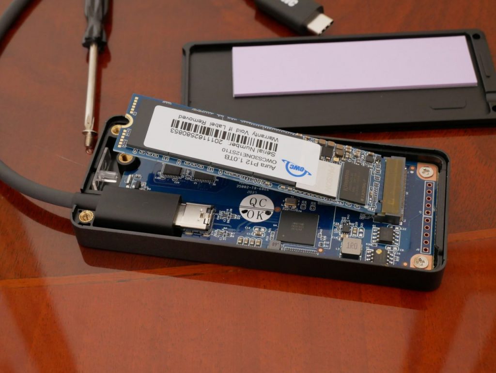 Parlando della costruzione dell’OWC Envoy Express è realizzato in alluminio nero ed è pensato per unità SSD M. 2 NVMe 2280 che viene montato al suo interno semplicemente con una piccola vite. In ogni caso Envoy Express permette di utilizzare qualsiasi unità, inclusi gli SSD Aura OWC fino a 4,0 TB di capacità, oltre ad essere compatibile anche per le capacità future di 8,0 TB, 16 TB, senza limiti.