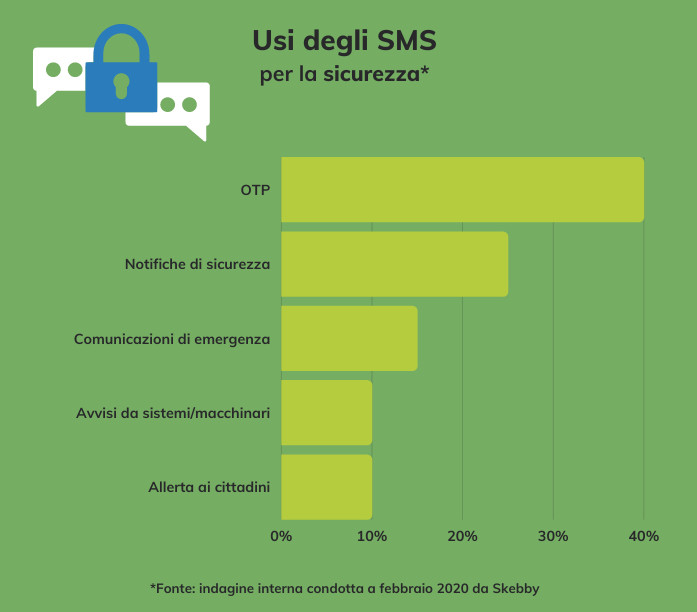 “Il binomio sicurezza e SMS è oggi più mai di attualità e, infatti, i messaggi di 160 caratteri sono sempre più utilizzati nell’ambito della security in senso lato”, ha dichiarato Francesca Quagliata, Digital Marketing Strategist di Skebby, che ha poi proseguito: “In effetti, il loro utilizzo spazia dall’autenticazione a due fattori alle allerte meteo, passando per gli avvisi ai manutentori dei grandi impianti, nel caso in cui si manifestino guasti a macchinari, in grado di mandare in crisi la produzione di un’azienda o mettere a repentaglio la sicurezza di uno stabilimento, tutte situazioni in cui gli SMS sono strumenti di comunicazione efficaci, semplici da implementare e cost effective”.