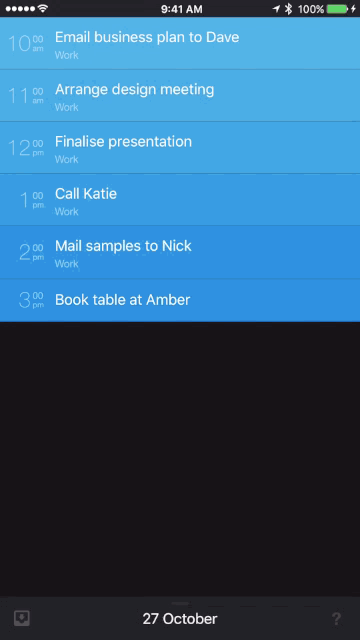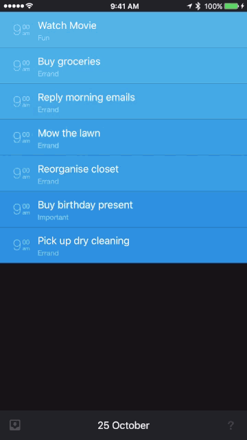 Per aggiungere una nuova attività, per chi ama la nota app Clear troverà qualche somiglianza, dovrete trascinare il dito dall’alto verso il basso e comparirà la finestra per aggiungere ciò che vogliamo. Il Team di Sorted per rendere più semplice possibile ha creato una serie di gesti. In particolare, la selezione multipla con un solo colpo. (immagine sotto)