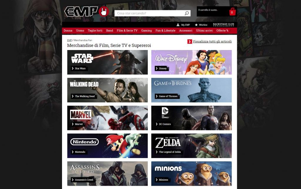 “Gli articoli legati a cinema e TV sono ormai una costante della nostra offerta, anche per rispondere in modo efficace a precise richieste dei nostri clienti. L’idea di far rivivere anche solo con la fantasia la magia dei personaggi e la suggestione dell’atmosfera che caratterizza le nostre serie tv preferite non solo ci appaga ma ci aiuta a fidelizzare sempre di più i nostri clienti”, commenta Alberto Gaglio, Country Manager di EMP Mailorder Italia.