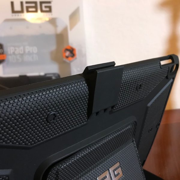 Anche dalle immagini potete osservare che si tratta di un case resistente agli urti ma con un nucleo morbido ed ottimo feeling tattile. Come per tutti i case UAG il case rispetta gli standard militari di caduta (MIL-STD 810G-516.6). La cosa più interessante è la possibilità di regolarla ma anche di rimuovere una parte di essa; ottimo per collegare la Smart Keyboard e utilizzarla come copertura dello schermo e supporto invece del supporto della Folio.