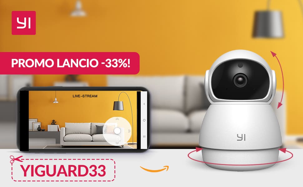 Ecco allora una delle ultime arrivate in casa YI Technology, YI Dome Guard, in Promo-Lancio da oggi fino a Lunedì 8 Febbraio al prezzo più basso! Soltanto 23,44€ (33% di sconto) con codice-sconto ✂✂