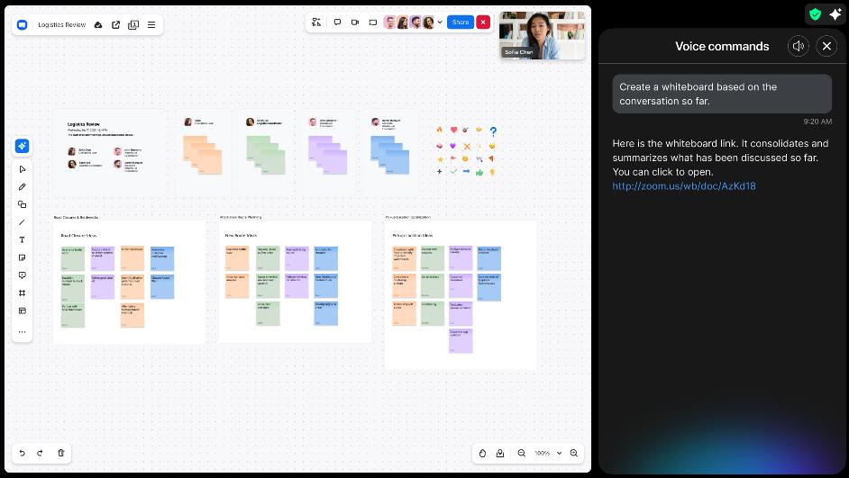 - Produttività hands-free: i comandi vocali avanzati in Zoom Rooms consentono alle persone presenti in sala di chiedere ad AI Companion di creare una Zoom Whiteboard o generare action item, favorendo una collaborazione più naturale e riducendo le interruzioni. Insieme agli smart name tag – che applicano etichette nominative ai partecipanti in sala per migliorare l’attribuzione degli interventi – i comandi vocali migliorati contribuiscono a rendere le riunioni più produttive e inclusive, migliorando sottotitoli, trascrizioni e riepiloghi. (Previsto per fine febbraio 2026.)
